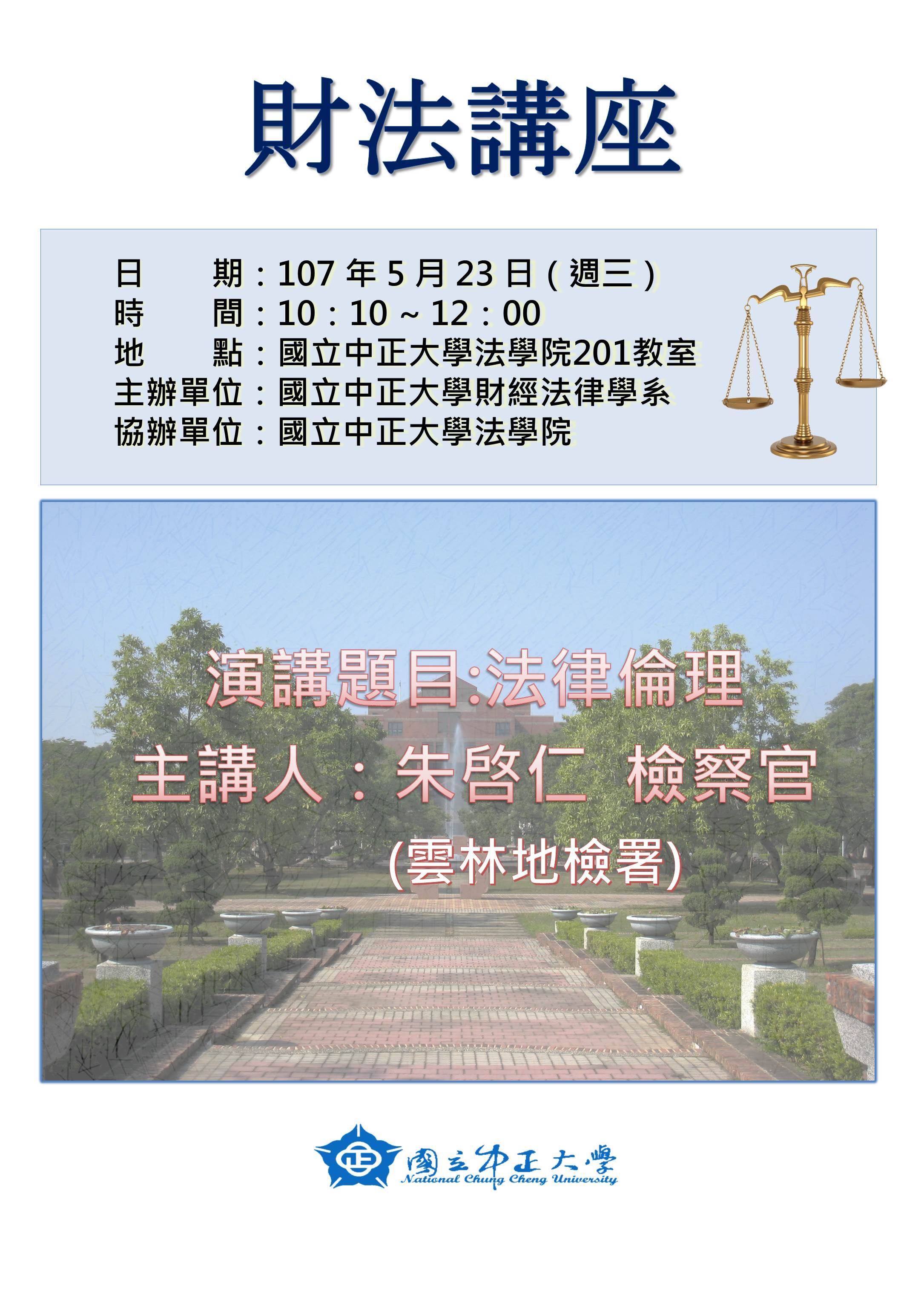107/05/23 | 朱啟仁(雲林地檢書檢察官) | 法律倫理 | [海報] |