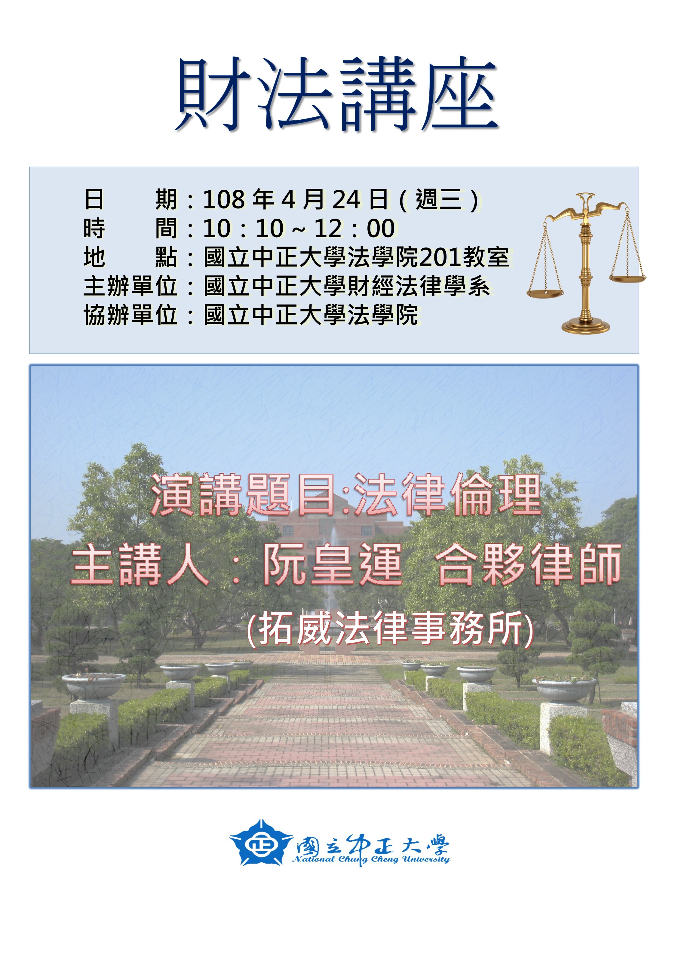 108/04/24 | 阮皇運(拓威法律事務所合夥律師) | 法律倫理 | [海報] |