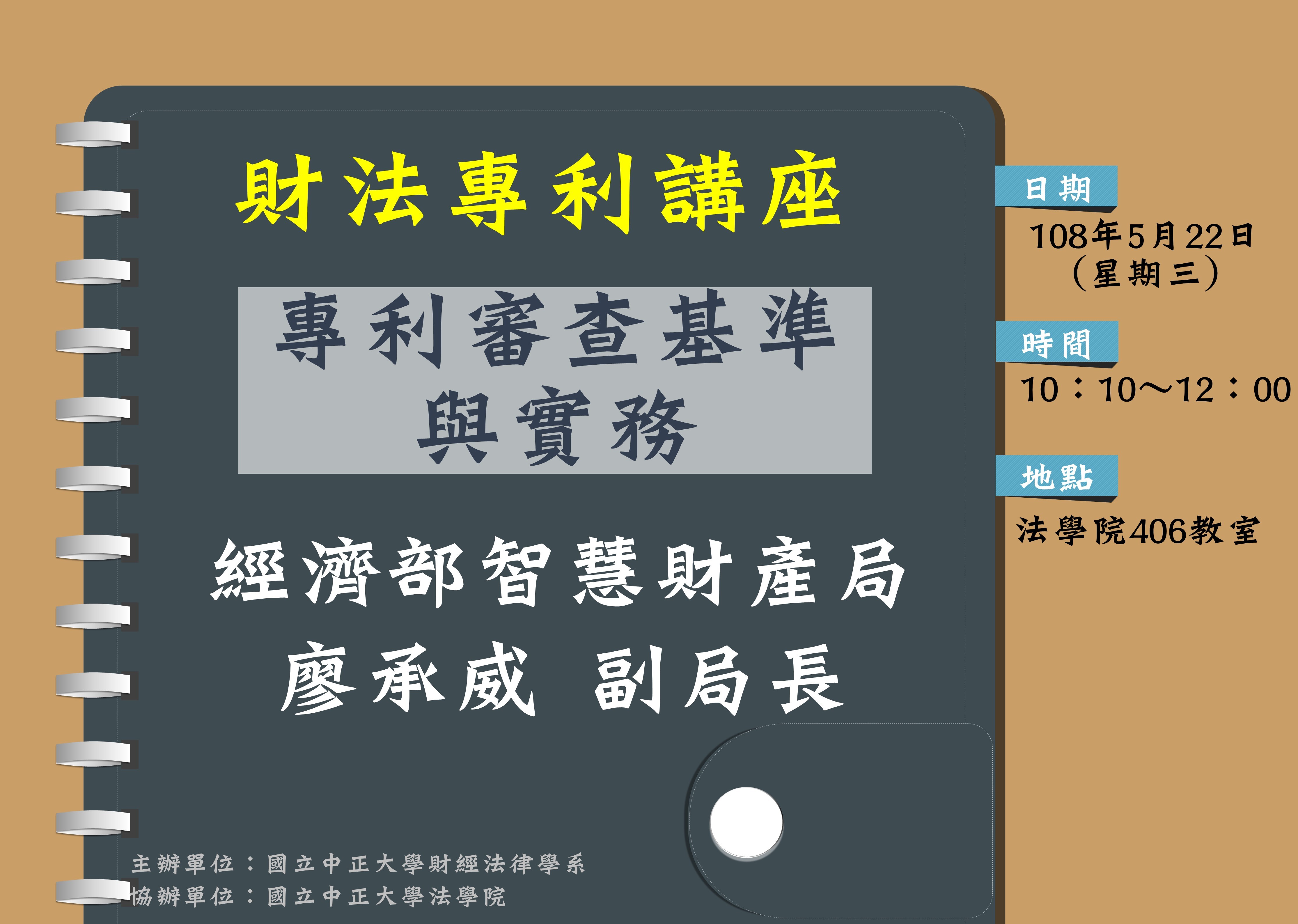 108/05/22 | 廖承威(經濟部智慧財產局副局長) | 專利審查基準與實務 | [海報] |