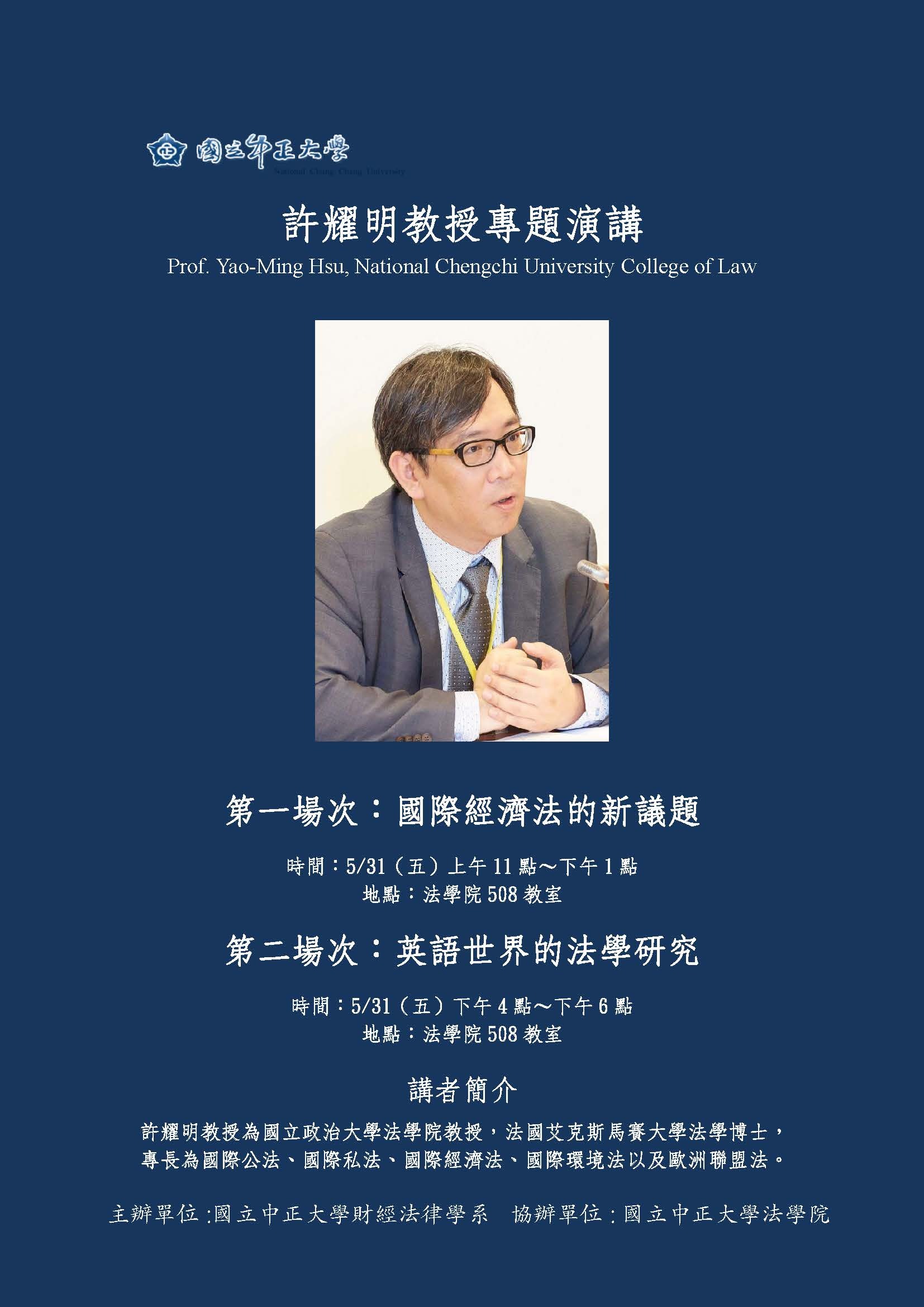108/05/31 | 許耀明(國立政治大學法學院教授) | 國際經濟法的新議題 | [海報] |