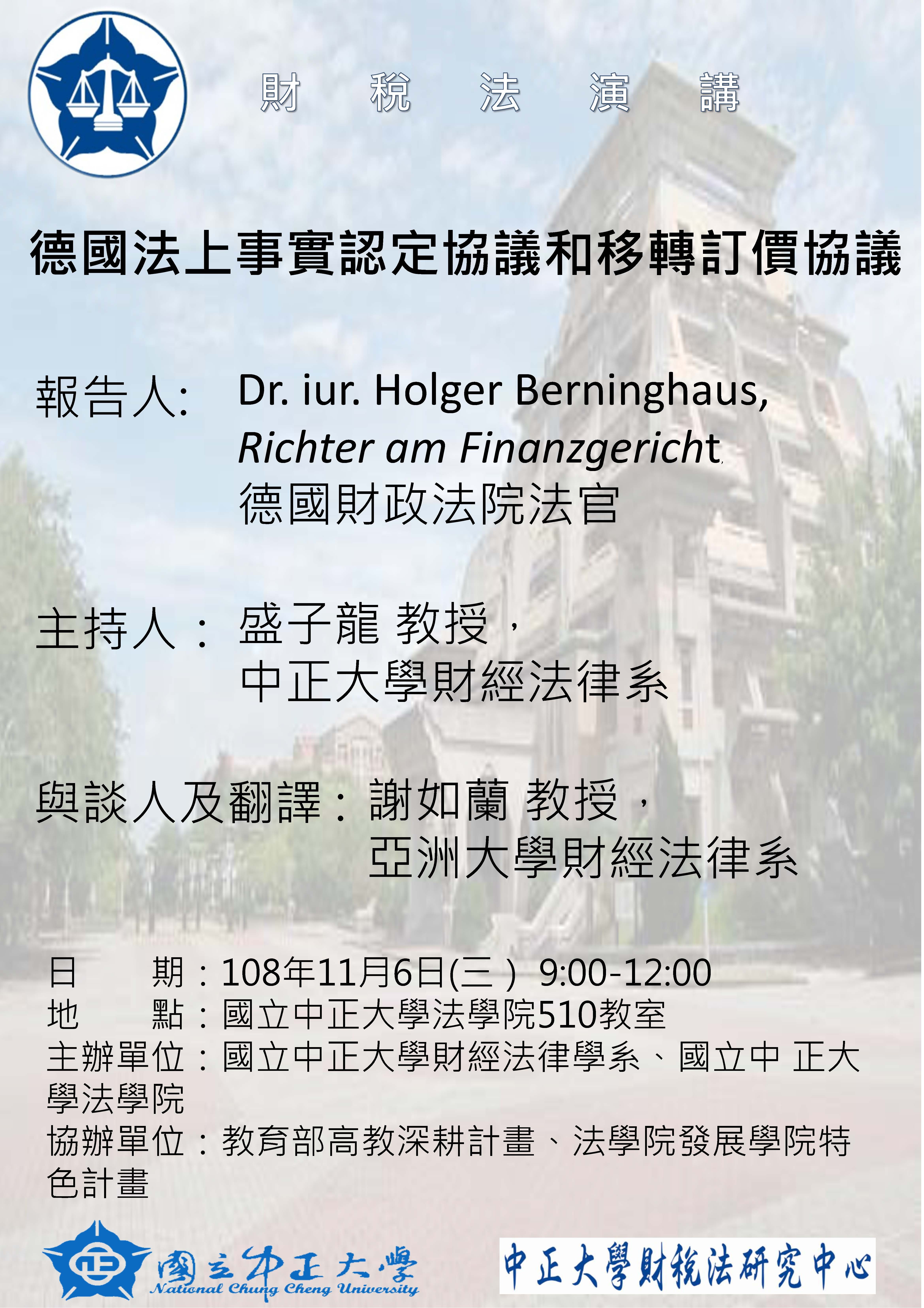 108/11/06 | Dr. iur. Holger Berninghaus, Richter am Finanzgericht (德國財政法院法官) |