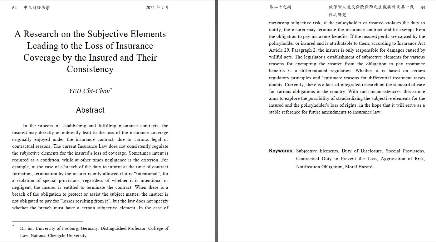 A Research on the Subjective Elements Leading to the Loss of Insurance Coverage by the Insured and Their Consistency |