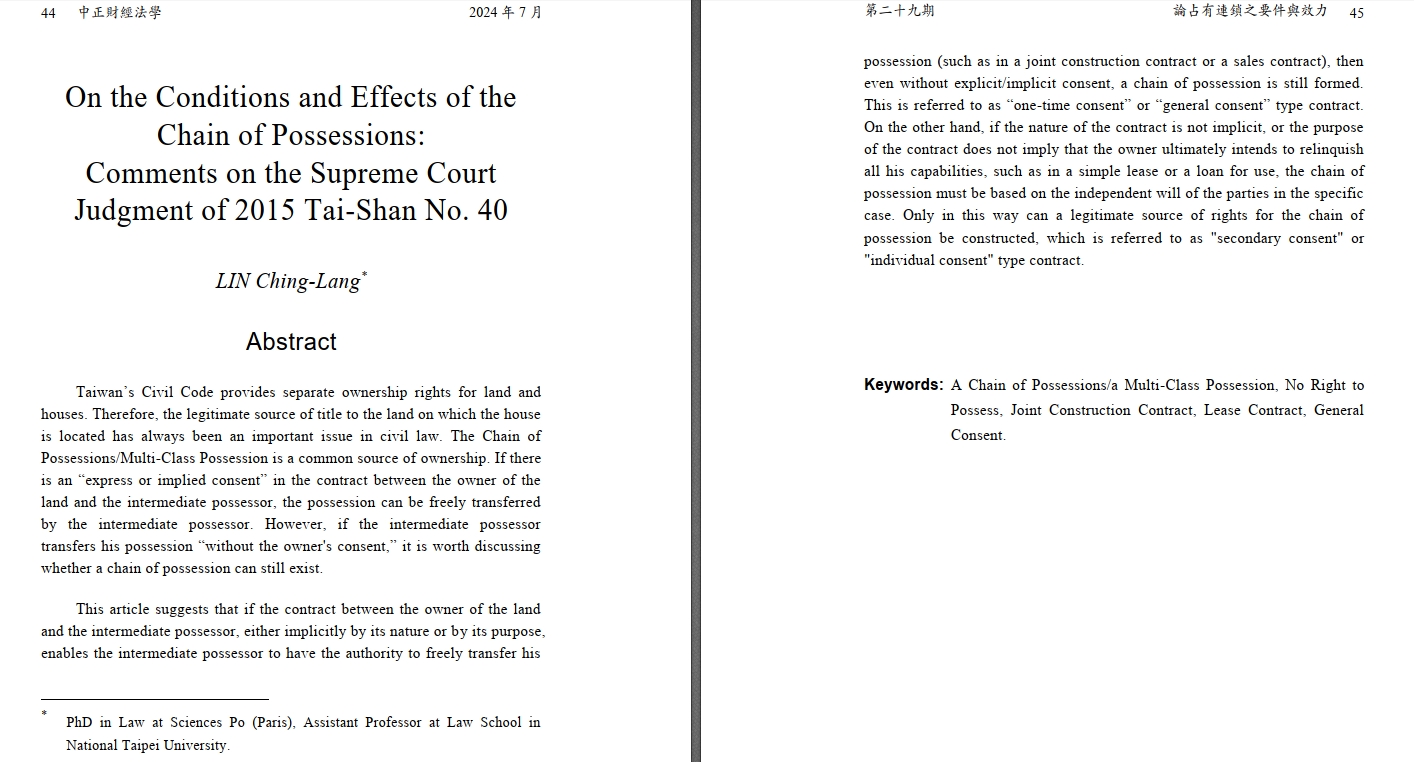 On the Conditions and Effects of the Chain of Possessions: Comments on the Supreme Court Judgment of 2015 Tai-Shan No. 40 |