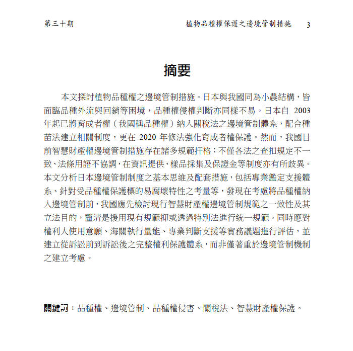 植物品種權保護之邊境管制措施-日本法制之比較觀察與啟示 |