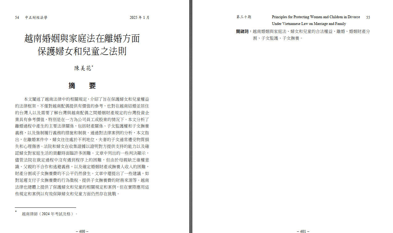 (越南婚姻與家庭法在離婚方面保護婦女和兒童之法則) |